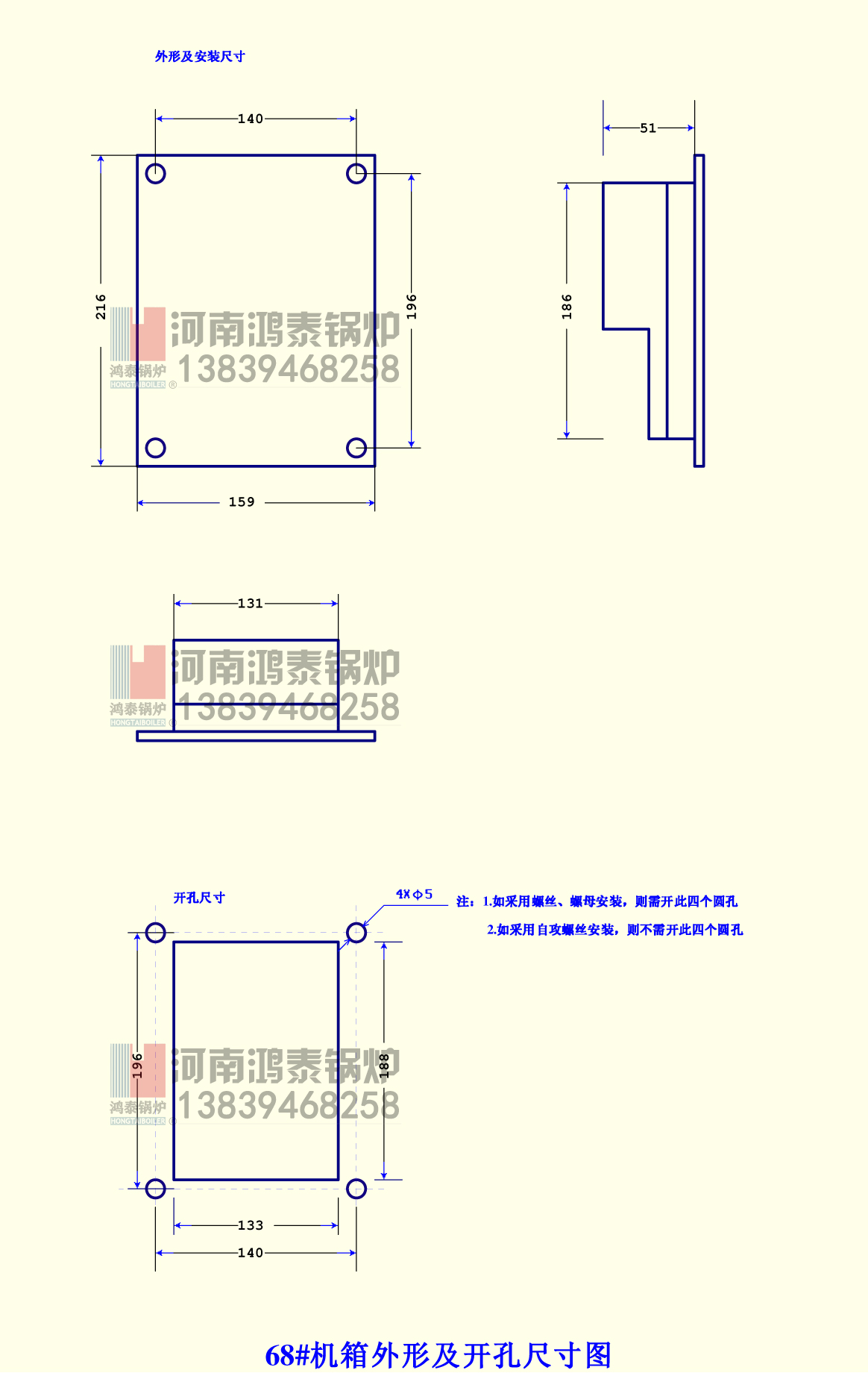①按“外形及开孔尺寸图”开安装孔,将需接电线从开孔处穿出。