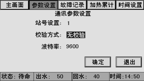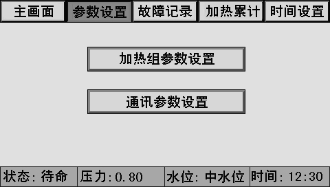 按“加热组参数设置”,进入加热组参数设置画面。按“通讯参数设置”,进入通讯参数设置画面。