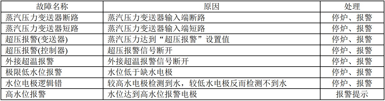 注: “高水位报警”不停炉。