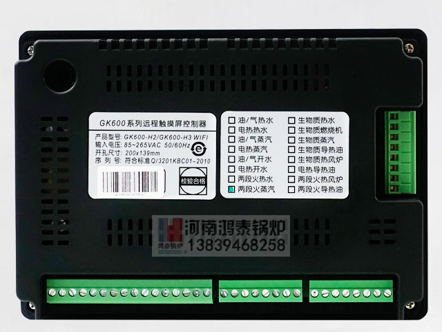 GK600-H3系列智能锅炉控制器以Cortex-M3处理器为核心,以彩色触摸屏作为人机界面,具有文字、图形、动画等显示功能。适用于燃油/燃气、生物质燃料、电加热的蒸汽锅炉、热水锅炉、开水锅炉,燃烧机、热风炉、导热油炉的自动控制。控制器采用ARM技术,实现了多种参数的精密测量、定值调节。其结构紧凑、操作方便、信息丰富,具有自动化程度高、抗干扰能力强、可靠性高等优点。本说明书适用于燃油/燃气两段火蒸汽锅炉。